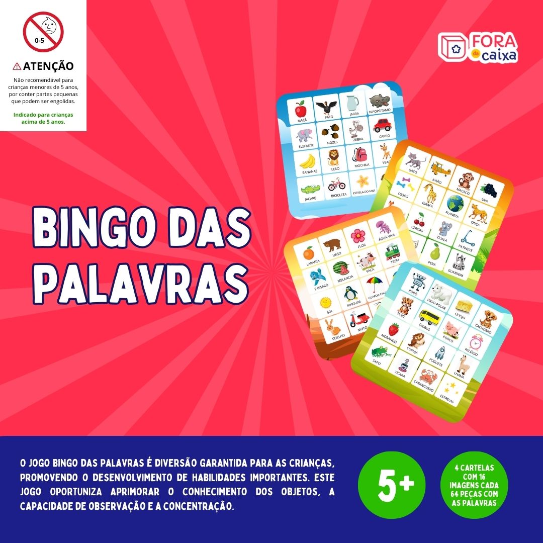 O jogo Bingo das Palavras é diversão garantida para as crianças, promovendo o desenvolvimento de habilidades importantes. este jogo OPORTUNIZA aprimorar o conhecimento dos objetos, a capacidade de observação e a concentração.