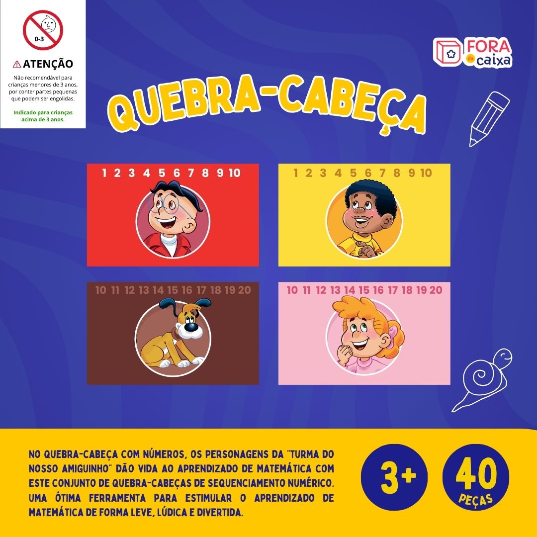 No quebra-cabeça com números, os personagens da “turma do nosso amiguinho” dão vida ao aprendizado de matemática com este conjunto de quebra-cabeças de sequenciamento numérico. Uma ótima ferramenta para estimular o aprendizado de matemática de forma leve, lúdica e divertida.
